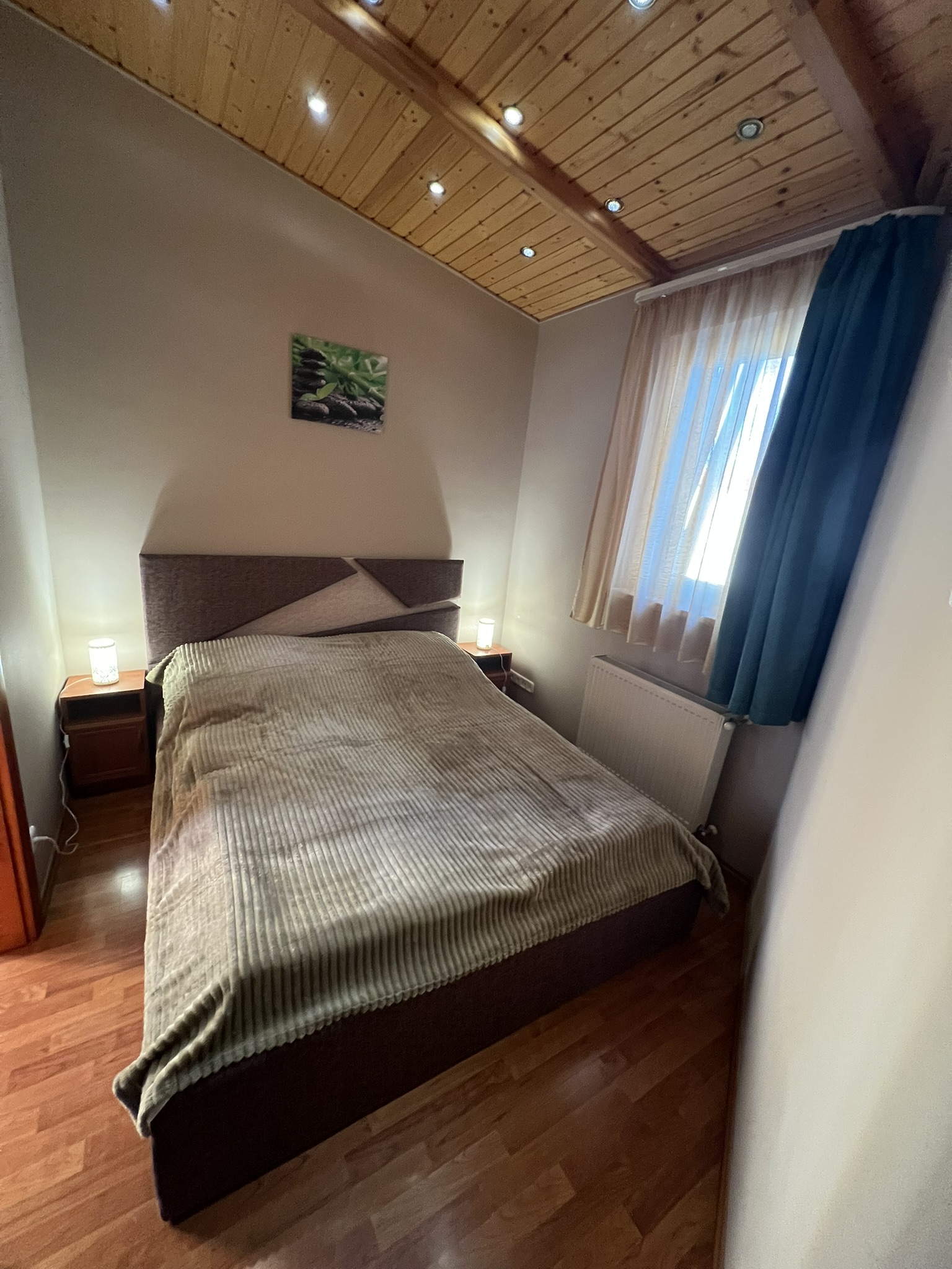 Felszereltség: ágyneműk, széf, törölközők, hajszárító, vasaló, kávéfőző, hűtő(fagyasztóval), mosógép, mikró, elektromos főzőlap, LED-TV, WIFI, 1 Francia ágy, nappaliban sarok ülő ami ággyá alakítható, erkély belső udvarra néz, 1 gépkocsinak az udvarban ingyenes parkolási lehetőség.